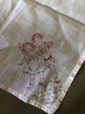 ANTIQUE HANDKERCHIEF RED & IVORY CHILD''S MUSICAL NURSERY QUILT BLOCK