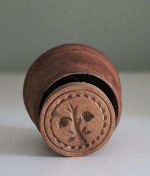 ORIGINAL VINTAGE ANTIQUE BUTTER PRESS MOLD APPROX. 234 X 234 WORKS