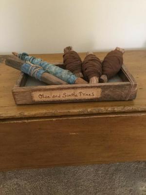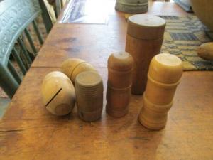 EARLY PRIMITIVE WOOD BOX AND BARN WOOD PEGS