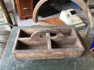Antique Primitive Wooden Utensil Tool Box Carrier Tote