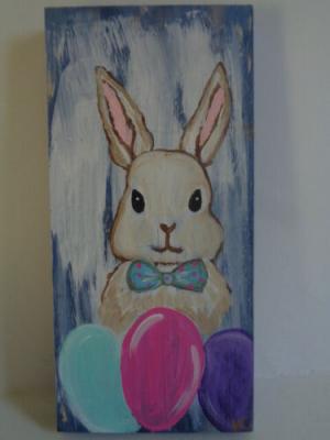 HAND PAINTED ART~*~PRIMITIVE PRIM BUNNY & EASTER EGGS~*~SPRING WOOD Board