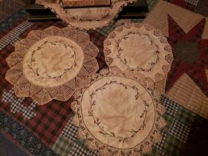 ~*Awesome~* Primitive " 3 PIPS & VINES DOILIES" Hand Stitched! Oh My!
