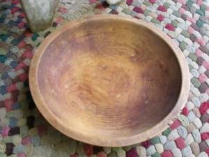 Antique vintage wooden primitives out of round wood butter dough bowl hand turn