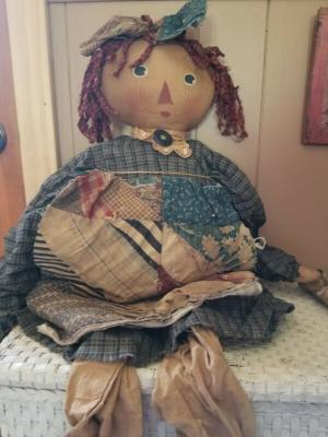 Primitive Raggedy Ann 30" doll~Folk Art Annie~Old Worn Vintage Look. Sweet.