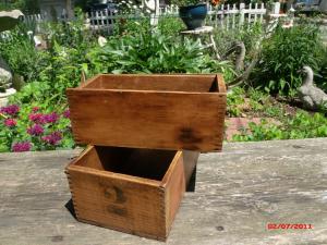 2 VINTAGE WOODEN STORAGE DISPLAY BOXES OLD WOOD BOX PRIMITIVE LOT
