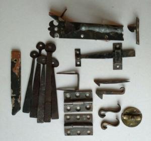 18th/19th CENTURY DOOR HARDWARE & 2 BRASS SERPENT HOOKS & DOOR CATCH