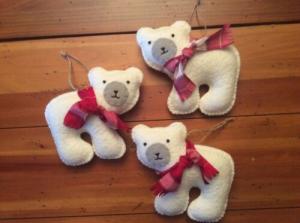 PRIMITIVE WOOL FELT ORNIES BOWL FILLERS SET OF THREE CHRISTMAS POLAR BEARS