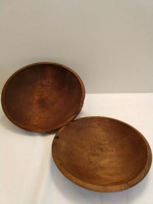Two Antique Vintage Primitive Wood Bowls Medium Size 10" & 12"