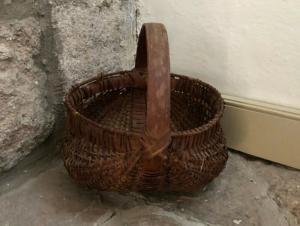 PRIMITIVE~ANTIQUE~OLD~OAK SPLINT FLOWER HARVEST PRODUCE GATHERING FARM BASKET