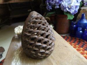 Antique Primitive Carved Wood LEAF ACORN? NUT Butter Mold Press Stamp
