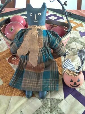 Primitive Grungy 13" Halloween Scaredy Cat Doll ~ Ro''s Cluttered Attic