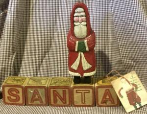 Primitive tiny Sampler Pillow~Santa Holds Pine Tree~ Early Quilt~Folk Art ~X-MAS