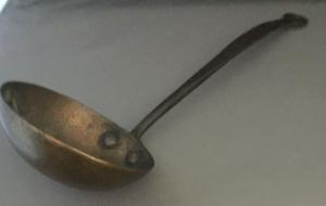 Antique Primitive Brass Dipper With Forged Iron Handle Rat Tail End 13” L C.1875