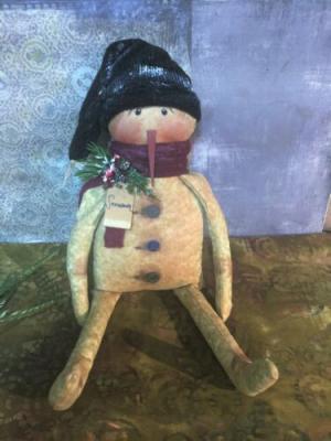 *Primitive 18x5in BLACK HAT SNOWMAN C FABRIC HANDMADE Country old rusty doll*