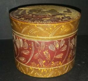 ANTIQUE MINIATURE TREENWARE WOOD PANTRY SEWING BOX PAINTED & DECORATED AS FOUND