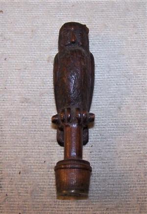 Fine Vintage Antique Folk Art Carved Pipe Tamper Owl Walnut Estate