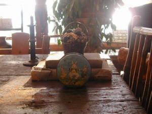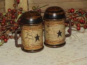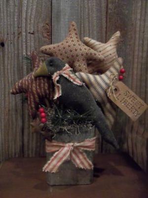 Primitive Americana Decoration - Handmade Stars and Crow in Old Tin Container