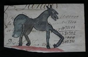Rare Amish Childs Ledger Paper Watercolor Painting of a Horse c.1840s