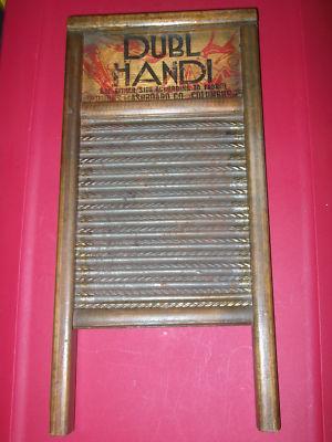 Vintage DUBL HANDI Columbus Ohio wood & metal washboard hand washing material