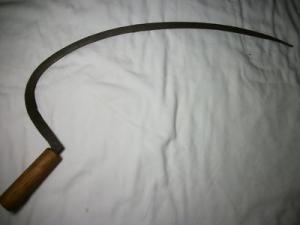 LARGE HAND SICKLE SCYTHE 22 1/2 ~ FARM TOOL OLD METAL WOOD ANTIQUE DECORATION