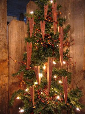 10 Pencil Glittered Folk Art VALENTINE HEARTS ~ Primitive Wood Tree Ornies