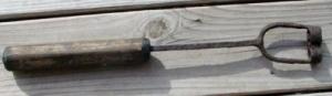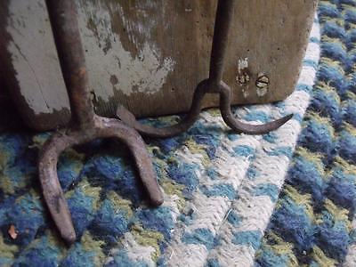 2 Old Primitive Antique Blacksmith Forged Iron Hearth Tools Flesh Fork Double Hk