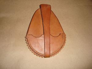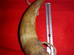 POWDER HORN CARVED HAND-MADE LEATHER WOOD AS FOUND GREAT DISPLAY NICE SAVE$$