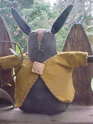 PRIM AND GRUBBY STUMP BLACK BUNNY RUPERT~YELLOW WOOL FELT JACKET~PFATT`