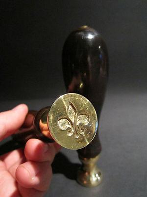 (2) Replica AntiqueTurned Wood Brass Wax Seal Writing Stamp Set Fleur de lis