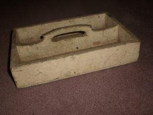 Vtg painted Pine Wood Cutlery Knife Box Wooden Tray Carrier