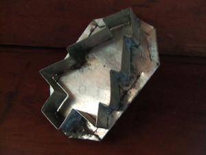 Antique signed REH 1949 Tin Flatback Christmas Tree Cookie Cutter Bead Soldered