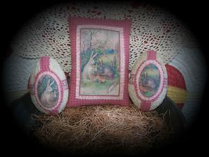 PriMiTiVe Vintage Easter Chenille,Felt Egg Pillow Ornie Filler Tuck Gathering 3