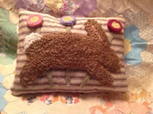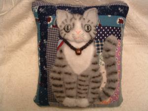 PRIMITIVE FOLK ART ANTIQUE , VINTAGE QUILT PILLOW - BLACK & GREY TABBY CAT