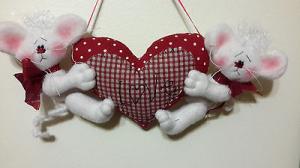 PRIMTIIVE H/C HANGING VALENTINE TWO MICE ON VALENTINE HEART