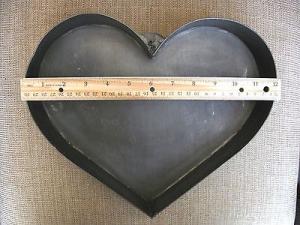 Vintage/Antique Dark Metal/Tin Handmade Heart Cake Pan--Rustic--Primitive---12"