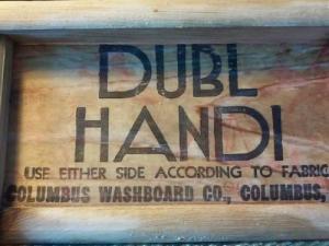 Small vintage washboard, "DUBL HANDI" Columbus Washboard Co. Ohio.gREAT gRAPHICS