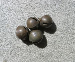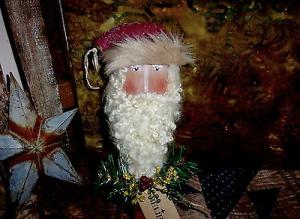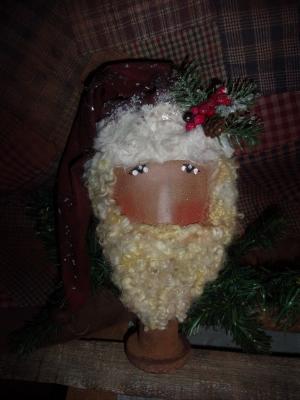** Primitive 9x4.5in CHRISTMAS SPARKLED Santa Head BOBBIN country old rusty doll