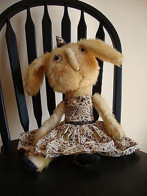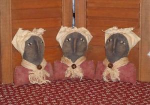 PRIMITIVE HC EASTER BUNNY RABBIT TRIO DOLL SHELF SITTER ORNIE TUCK
