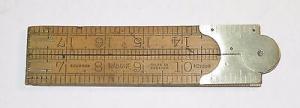 NICE 19TH CENTURY BRASS AND WOOD FOLDING RULER WITH MAKERS NAME RABONE