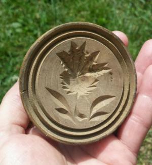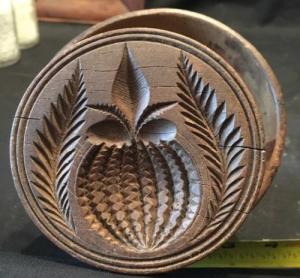Early Antique Flower Clover Design Butter Stamp Thistle Mold Deep Carved