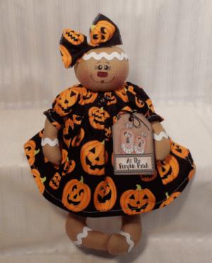 Primitive Little Raggedy HALLOWEEN GINGERBREAD Doll in PUMPKIN Dress
