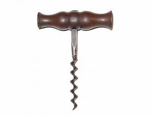 NICE 18TH CENTURY CORKSCREW WITH A SHAPED WOODEN HANDLE