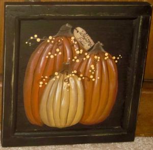 *~*PRIMITIVE*~* HP FOLK ART PRIM PUMPKINS *~* FALL WELCOME *~* SM. DOOR PANEL