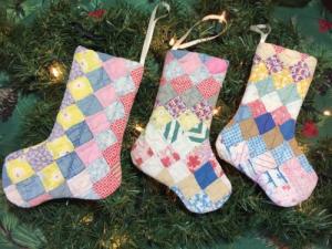 Vintage Quilt Christmas Stocking Ornaments - Primitive - Postage Stamp #144