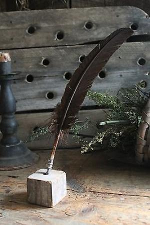 Primitive Early Writing Inspired Make-Do Feather Quill Dip Pen w/Wooden Holder