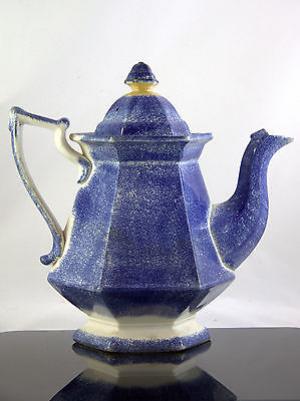 19 C CREAMWARE SPATTERWARE COFFEE POT STAFFORDSHIRE SPONGEWARE PEARLWARE TEAPOT