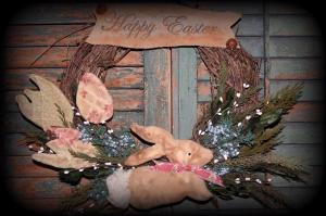 Primitive Easter Bunny, Egg Wreath Wall/Door hanger