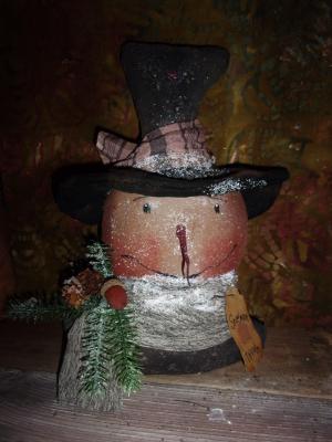 Primitive Noel Christmas Snowman - Ornie or Bowl Filler #1244