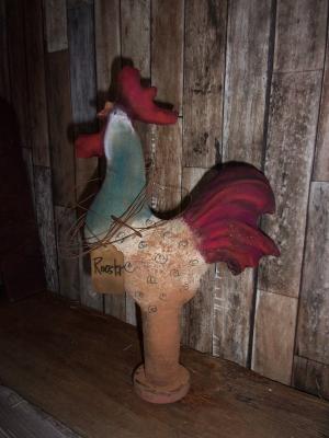 ** Primitive 11x7in Red Tail Rooster BOBBIN COUNTRY SPRING old rusty doll**