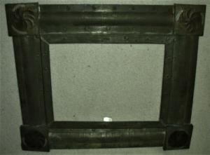 ANTIQUE c. 1860 PRIMITIVE TIN PUNCHED PICTURE FRAME PIN WHEEL HEX DESIGNS vafo